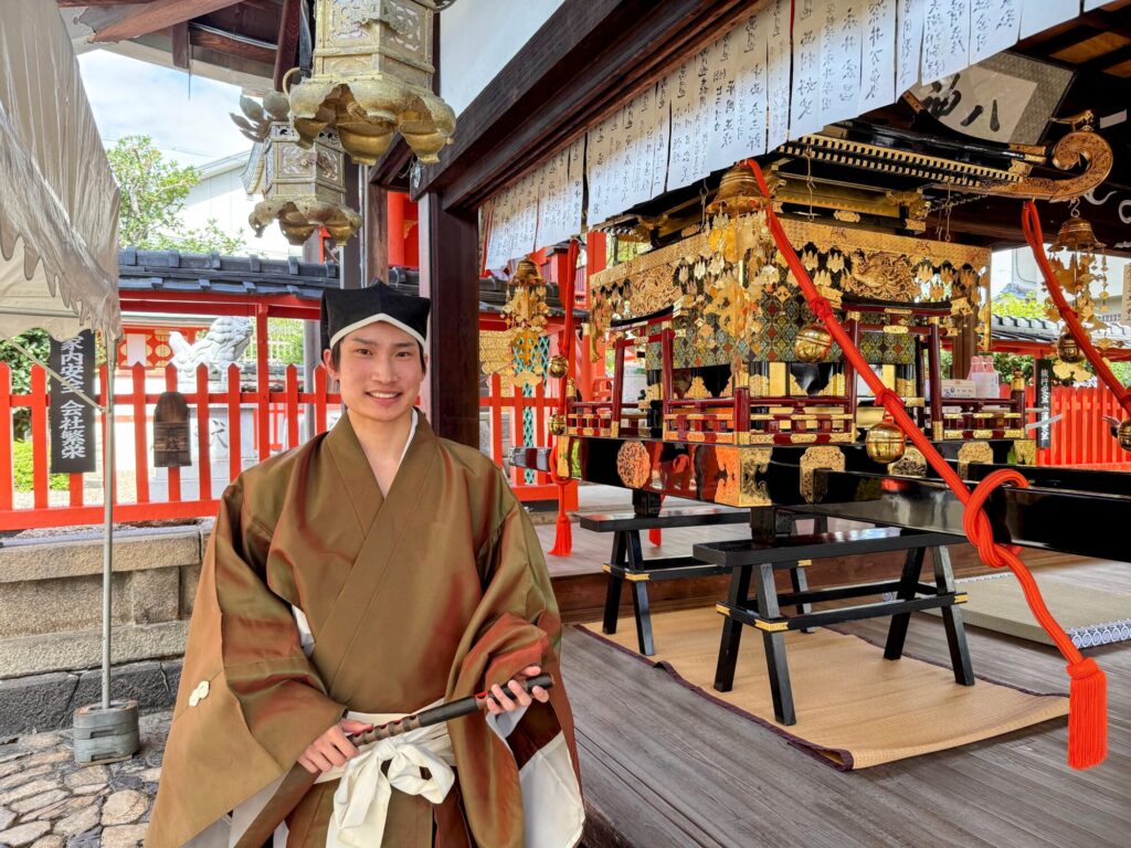 2回生になって社会教育の専門科目を学ぶようになると、部活動の中でも自分の専門分野においてできることは何かを考えるようになりました。今回の雅楽奉納は、神社を愛する人たちの大切なものを多くの人に共有してもらう活動なのではないかと考えています。きれいになった神輿を見て、氏子の方お一人おひとりの神社に対する想いが神輿の修復という形に表れているのだと感じました。その想いがもっと多くの人に広がるためには、たくさんの人に知ってもらう機会を作ることも大事だと思います。今回の雅楽奉納が少しでもその役に立ったのであれば嬉しいです。これからも人と人、場所と場所をつなぐことに貢献していきたいです。(2024年入学 内田 治喜さん)